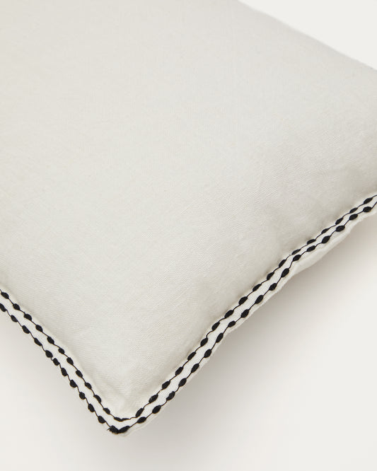 Housse de coussin Sinet en lin blanc avec broderie noire 45 x 45 cm