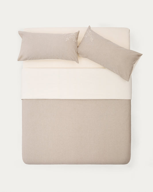 Ensemble Sotela housse de couette et taie d’oreiller à rayures avec broderie 100 % percale de coton beige lit 90 cm