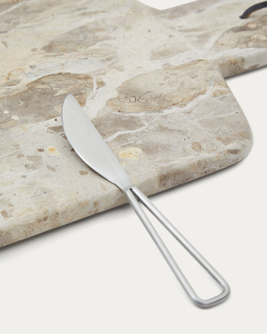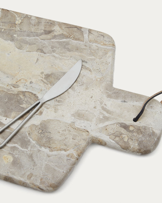 Ensemble de grande planche à découper et couteau Emilse en marbre beige