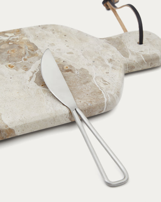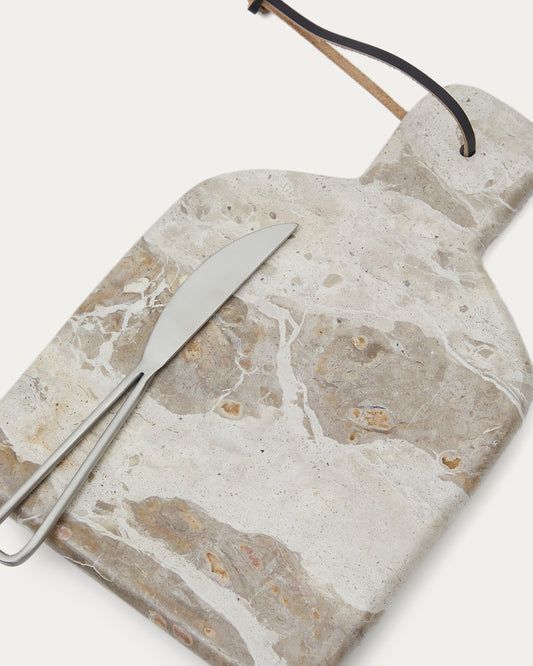 Ensemble de petite planche à découper et couteau Emilse en marbre beige