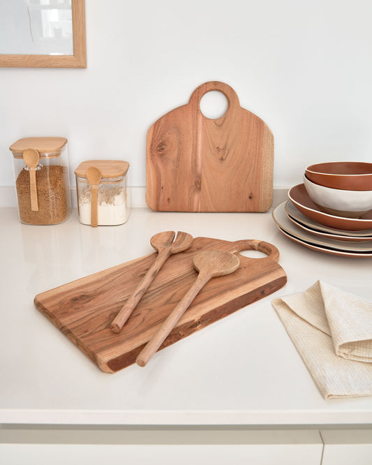 - Plateau ou planche à découper rectangulaire en bois d'acacia naturel. Laissez-vous séduire par ses tonalités et veinures uniques.