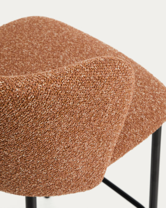 Tabouret Ciselia en chenille épaisse terracotta et pieds en acier avec finition noire FSC Mix Credit 75 cm