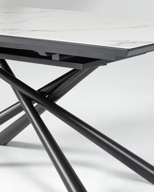 Table extensible Theone en grès cérame blanc et pieds en acier noir 160 (210) x 90 cm