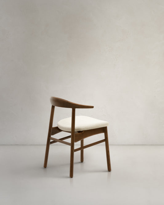 Chaise Timons tissu chenille beige déhoussable bois de chêne finition noyer FSC Mix Credit