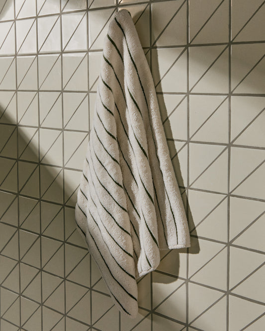 Serviette Dorane 100 % coton avec rayures vertes 50 x 90 cm