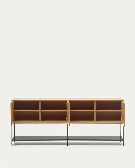 Buffet Vedrana 3 portes placage de chêne et pieds en acier noir 195 x 80 cm