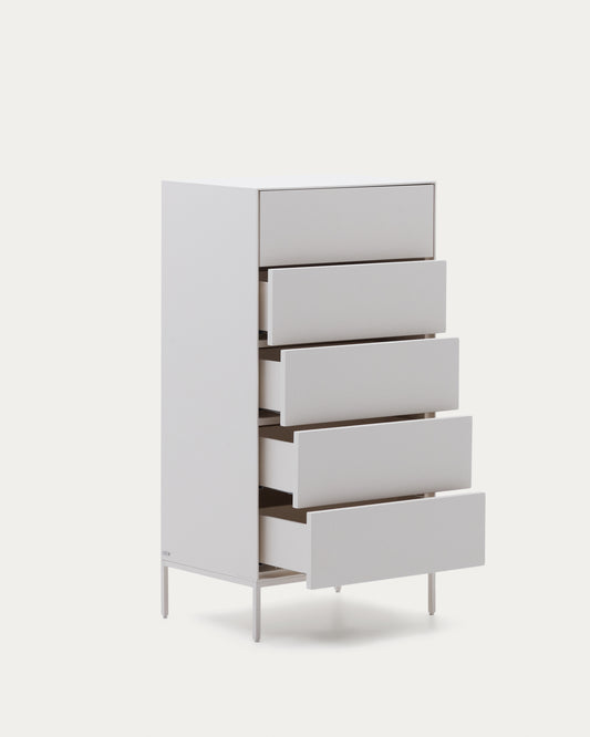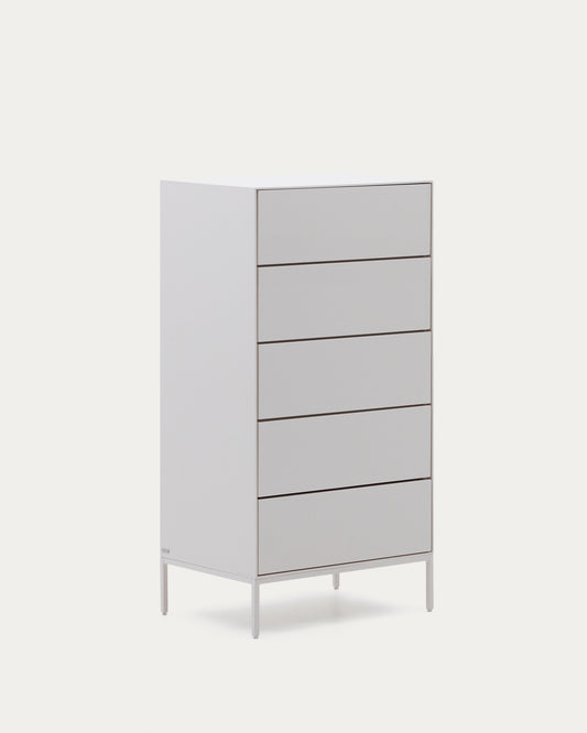 Commode Vedrana 5 tiroirs DM laqué blanc 60 x 114 cm