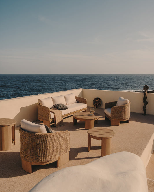 Canapé Xoriguer 3 places en rotin synthétique et bois d’eucalyptus FSC 100 % 223 cm