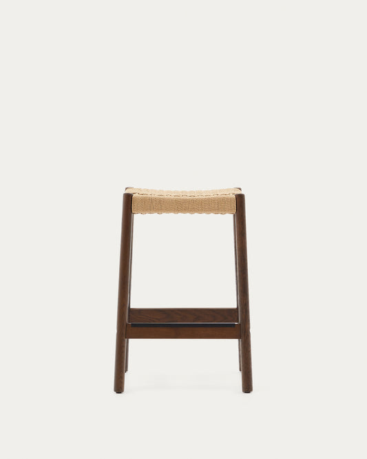 Tabouret Yalia en bois de chêne, finition noyer et assise en corde, hauteur 65 cm FSC 100 %
