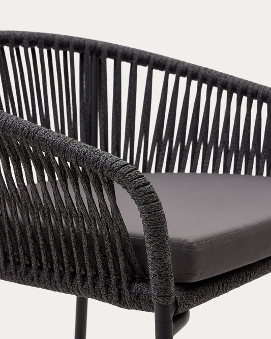 Tabouret Yanet en corde noire et acier galvanisé hauteur 80 cm