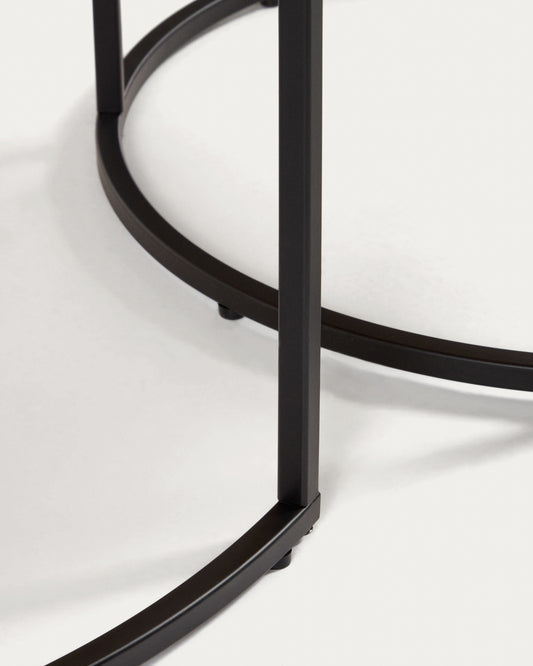 Ensemble 2 tables d'appoint gigognes Yoana placage de chêne et métal noir Ø 80 cm/Ø 50 cm