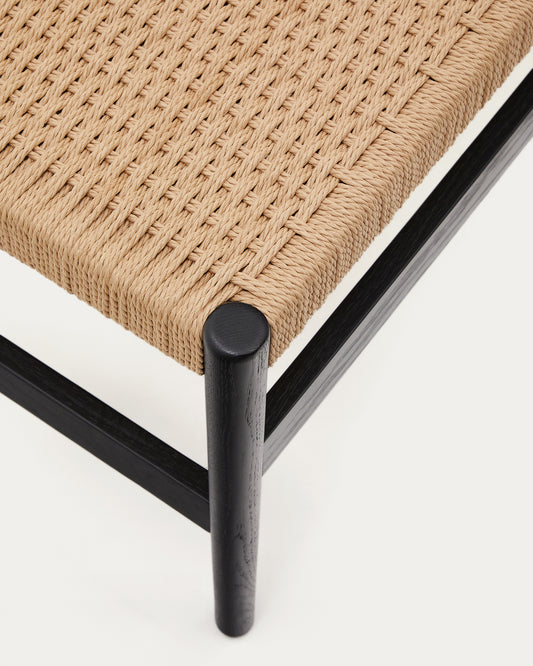 Banc Zaide en bois de chêne finition noire et assise en corde 120 cm FSC 100 %