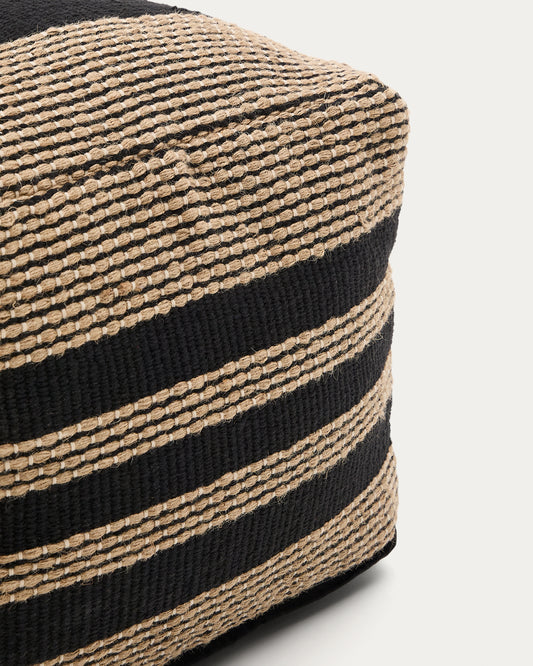 Puff Aylin de algodón y bordado de yute beige y negro 60 x 60 cm