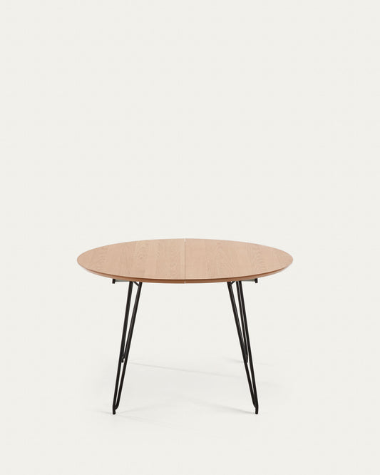 Taula extensible rodona Novac Ø 120 (200) cm xapa de roure potes d'acer acabat negre