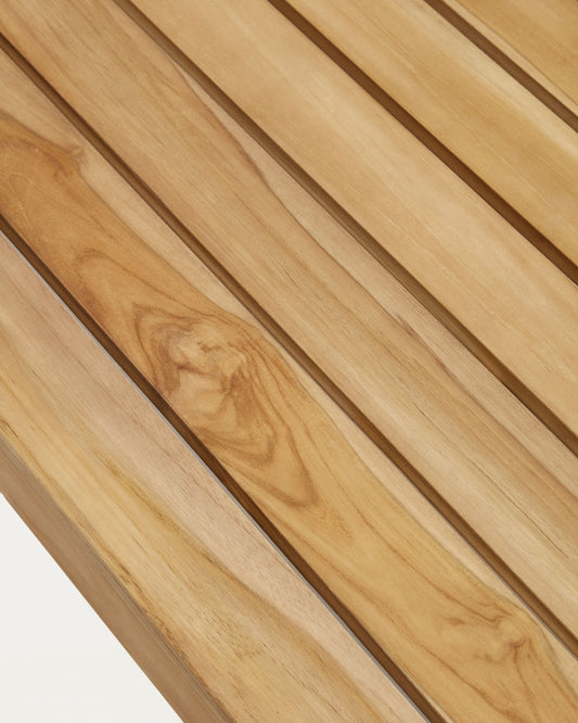 - Apte per a exteriors La fusta de teca tolera la humitat i els microorganismes que se’n deriven; és altament resistent i duradora en ambients d’exterior.