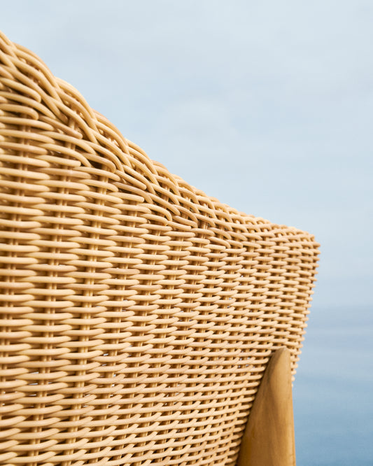 - Trenat a mà El ratán sintètic trenat a mà imita l’aspecte del vímet i, a més, és resistent a la intempèrie i fàcil de netejar.