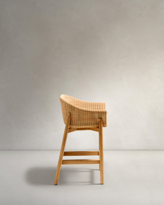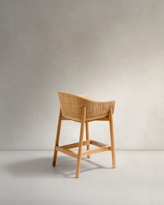 Tamboret Galea de fusta massissa de teca i rotang sintètic 65 cm FSC 100%
