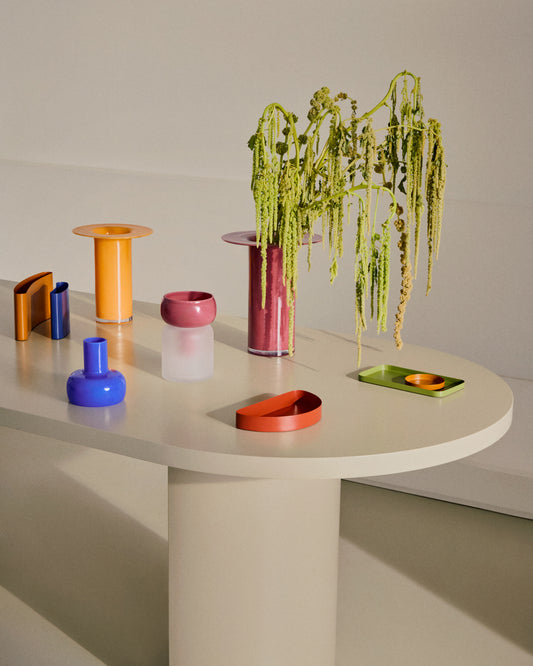 - Gerro de vidre transparent amb acabat mat i rosa amb acabat brillant.