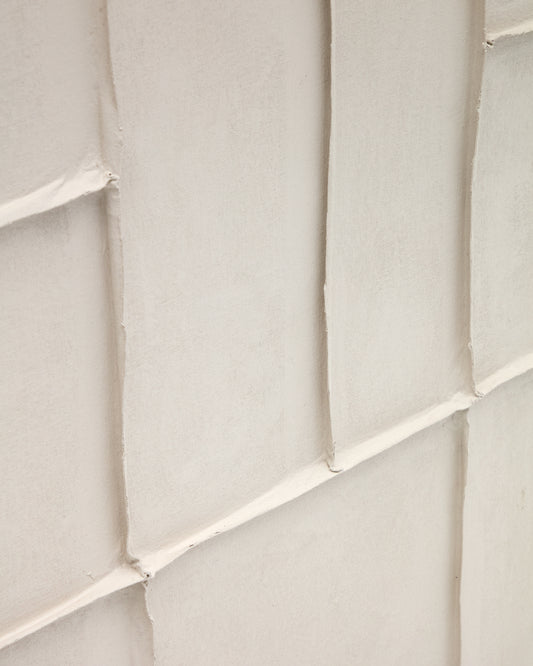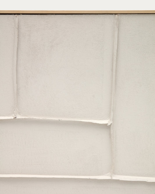 - Quadre abstracte de lli amb relleus en color blanc.