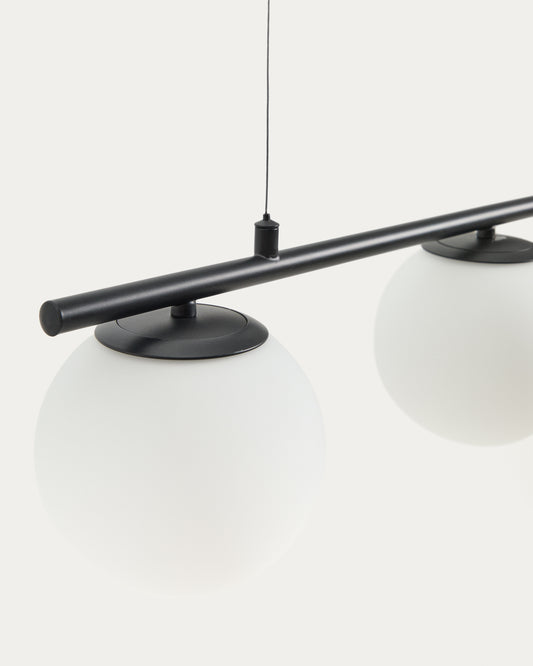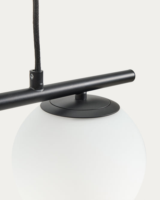Llum de sostre Brisia de metall amb acabat negre i 3 boles de vidre glacejat de Ø15 cm