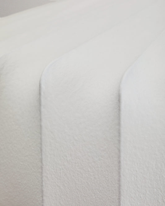 - Pantalla fabricada mitjançant una tècnica de polvorització de fibres sintètiques sobre una base de varetes d’acer en rotació, que actuen com a suport de la pantalla.