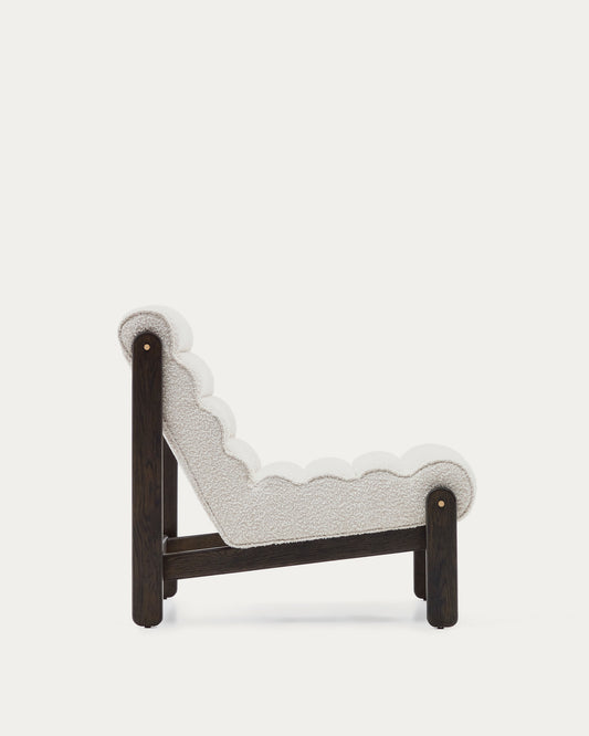 Butaca Magira de borreguet blanc i fusta massissa roure amb acabat fosc