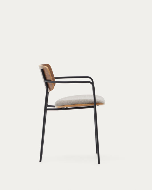 - Cadira amb braços de metall acabat pintat negre.