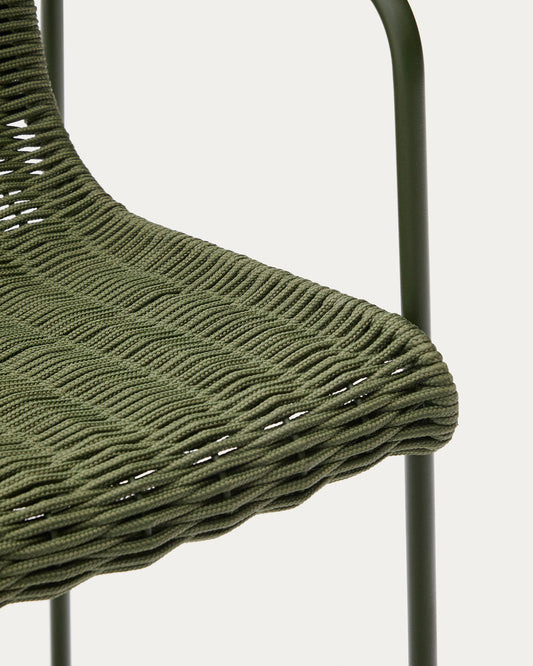 Tamboret apilable Maurina d'acer galvanitzat verd i corda verda 74,5 cm