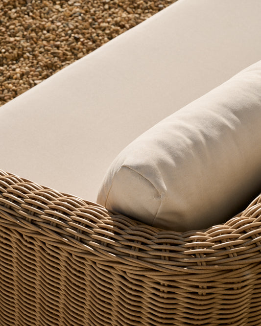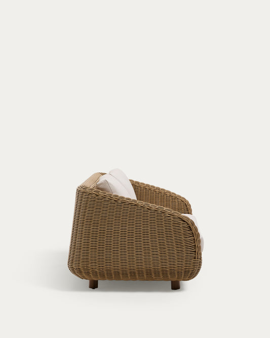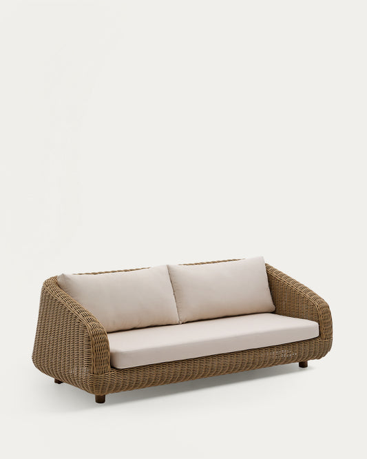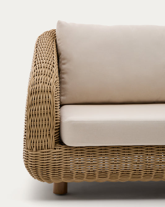 Sofà Meria de 3 places de rotang sintètic i potes de fusta massissa d'acàcia FSC 100% 208 cm