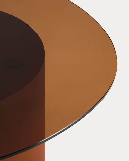 Taula de centre Olir de vidre temperat i acer marró 82 x 74 cm