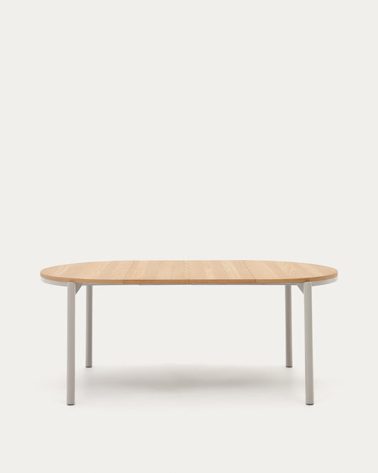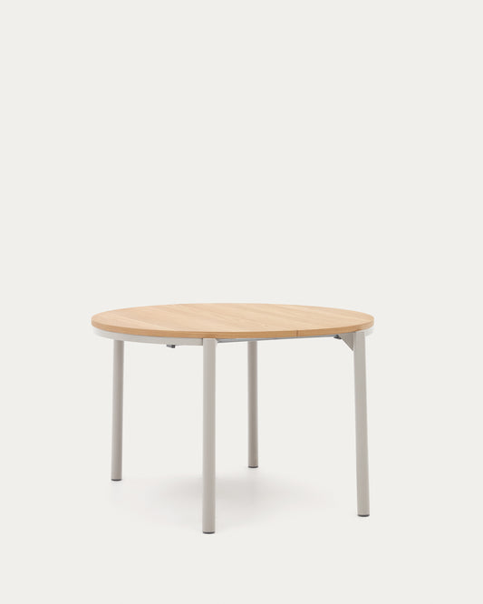 Taula extensible rodona Montuiri xapa de roure i potes d'acer acabat gris Ø 120 (200) cm