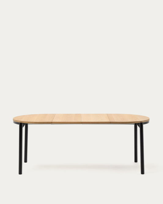 Taula extensible Montuiri xapa de roure i potes d’acer acabat negre Ø120(200) x 90 cm