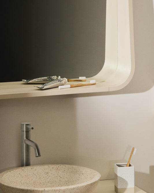 - Mirall de 90 x 60 cm amb marc de fusta contraxapada de freixe amb acabat lacat beix.