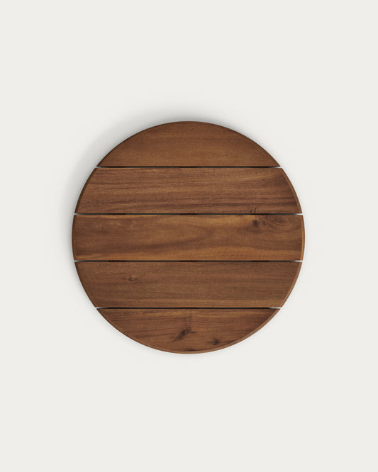 Mesa Saura de metal pintado negro y sobre de acacia con acabado nogal 75xØ70cm FSC 100%