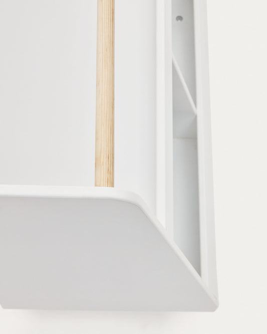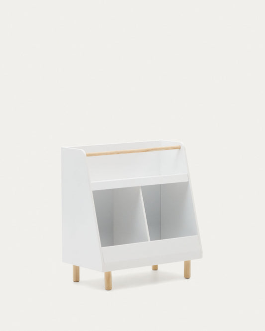 Librería Serwa de MDF blanco con patas y barra de madera maciza de pino