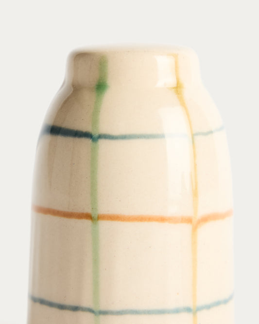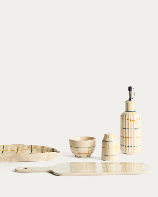 Conjunt Belor de saler i pebrera de ceràmica amb línies multicolor