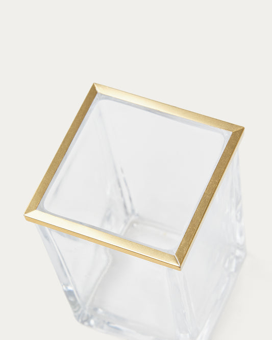 - Portaescobilles fet de vidre i metall amb acabat daurat.