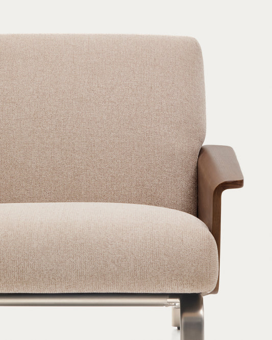 Sofà Amsen marró clar de 3 places de contraxapat de noguera i potes d'acer inoxidable raspallat 205 cm