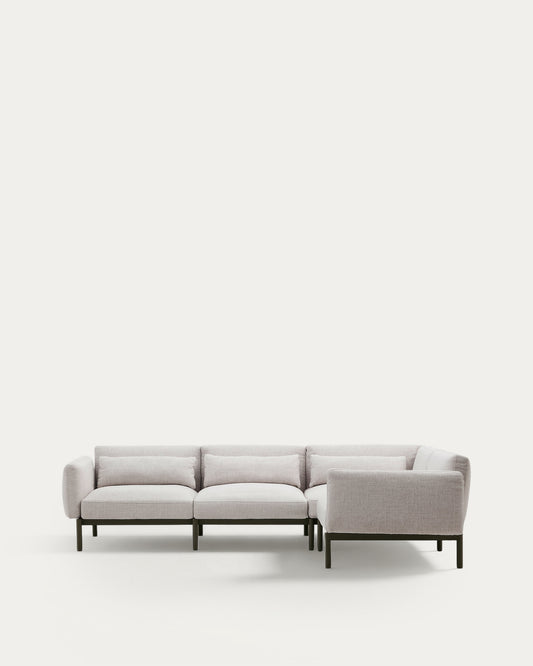 Sofà modular raconer d'exterior Sorells 5 places entapissat beix alumini verd 276x191,5 cm