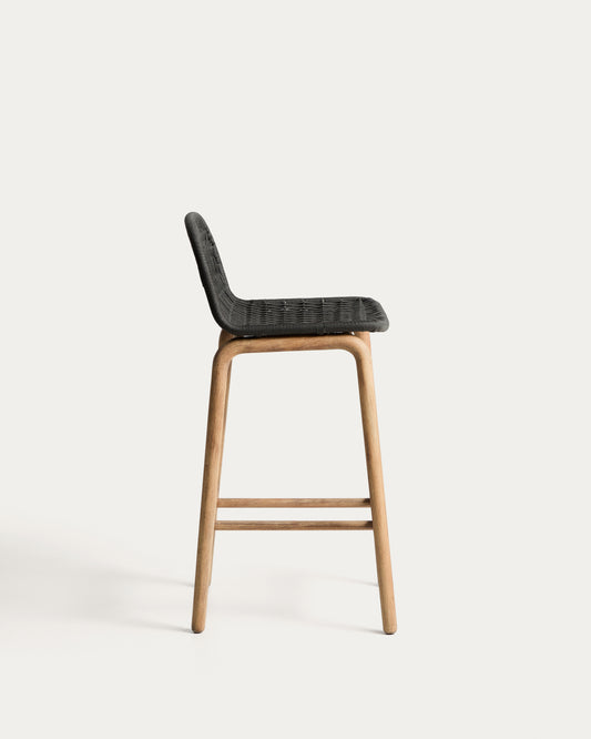 Tamboret Alipa de fusta massissa d’acàcia i corda gris fosc 75 cm FSC 100%