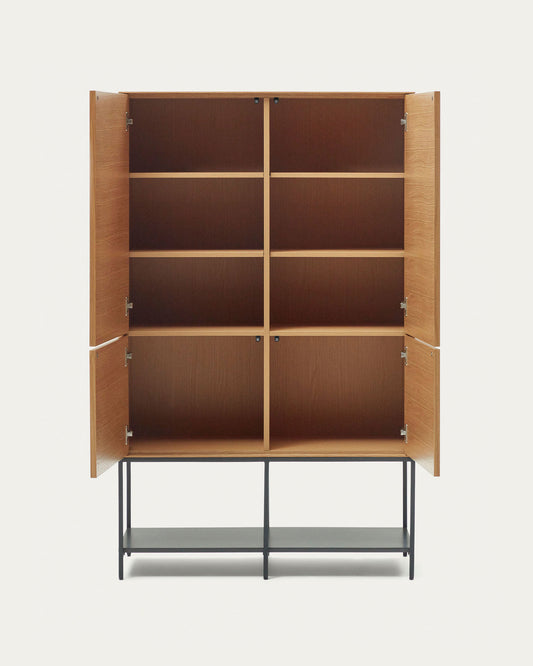 Aparador alt Vedrana 4 portes de xapa de roure i potes d'acer negre 97,5 x 160 cm