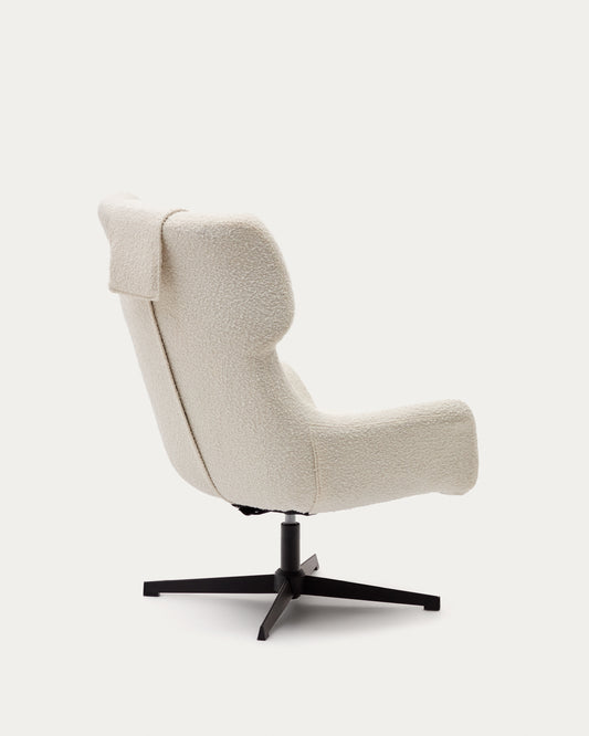 Butaca giratòria amb braços Zalina de borreguet blanc i acer amb acabat negre FSC 100%